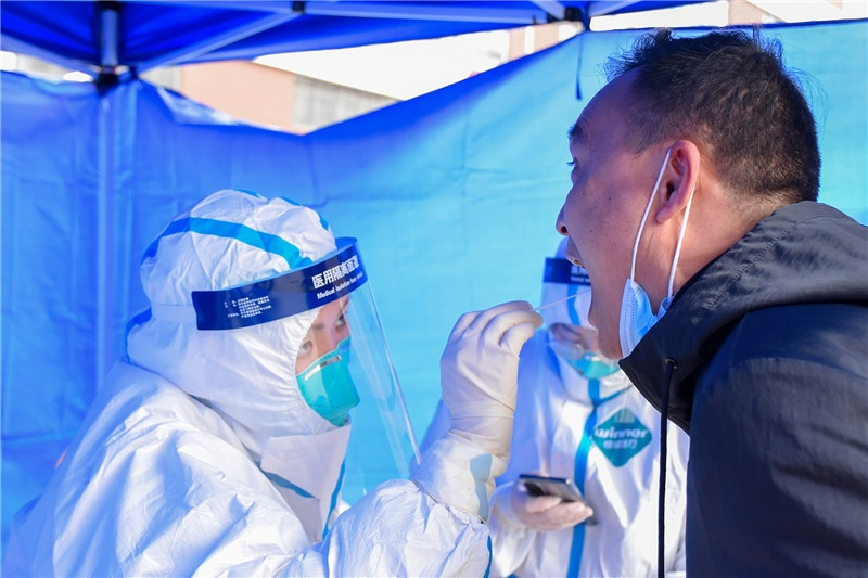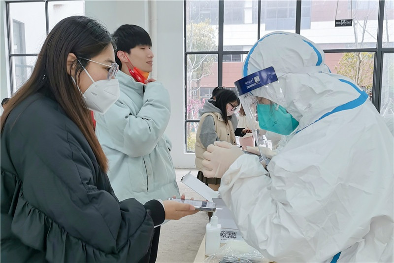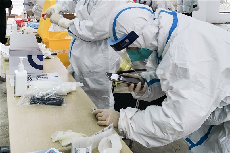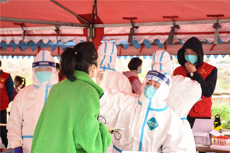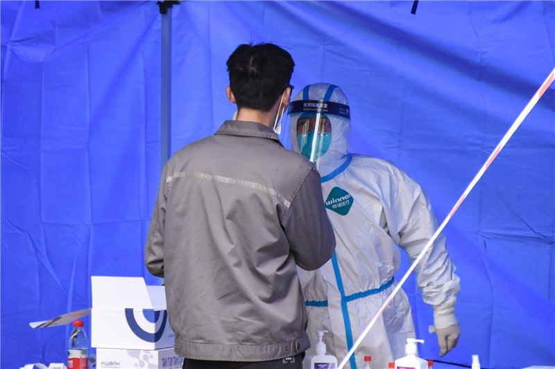 志愿者們?cè)诤怂釞z測(cè)現(xiàn)場(chǎng)進(jìn)行秩序引導(dǎo)、協(xié)助登記等協(xié)助工作。有的為不會(huì)使用微信小程序掃碼登記的居民提供指導(dǎo)幫助,有的配合醫(yī)生護(hù)士做好掃碼人員登記,有的協(xié)助特殊人群采樣等等。一米線、隔離帶、測(cè)體溫、查雙碼、信息登記,從入口到出口志愿者們幫助居民安排得井然有序,保證了各卡點(diǎn)檢測(cè)工作高效進(jìn)行。志愿者表示,“雖然我不是醫(yī)生、護(hù)士,但我應(yīng)該盡自己的綿薄之力,和大家一起打贏這場(chǎng)疫情防控戰(zhàn)!”受倒春寒降溫影響,這天寒風(fēng)刺骨,但是志愿者無一退縮。