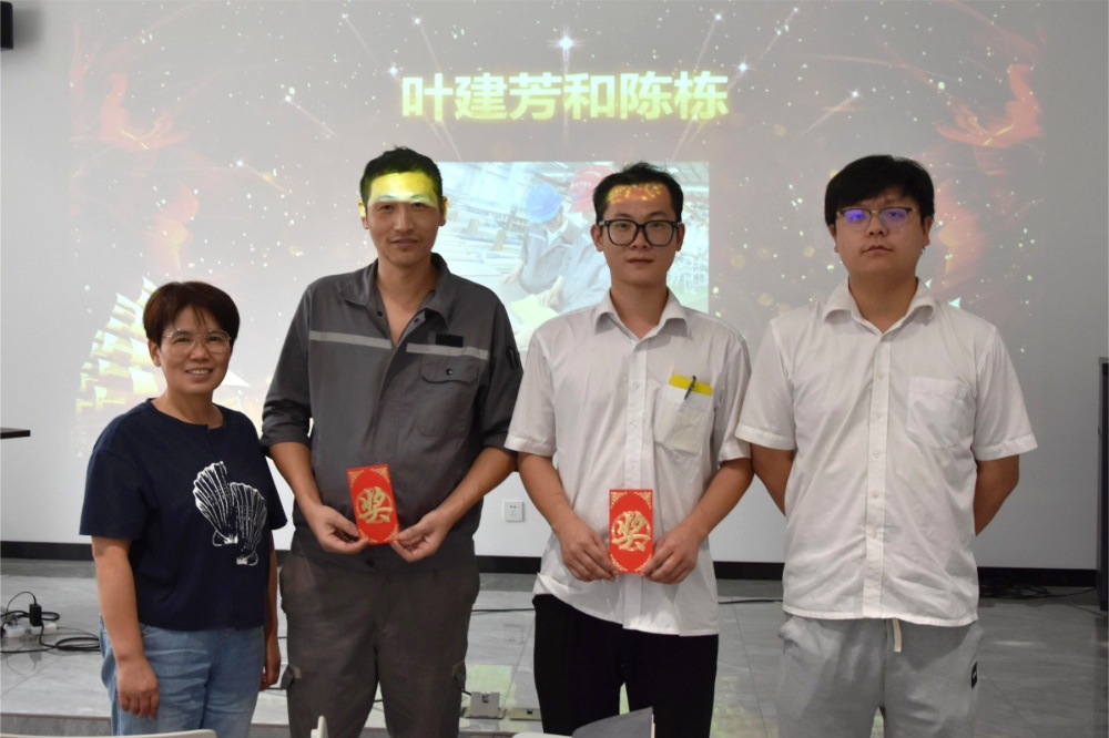 本次頒獎儀式師父獎勵由吳月琴吳總頒發,徒弟獎勵則分別由二車間主任干永明、一成品車間主任何張浩頒發。