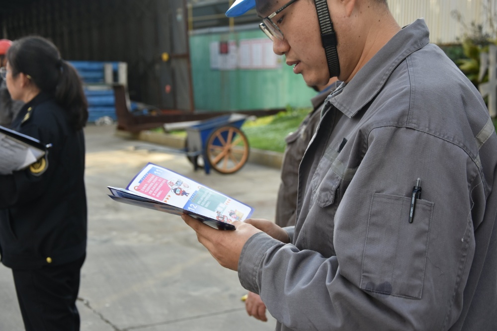消防員首先向員工分發了消防知識宣傳手冊,并為大家詳細講解應急逃生知識并示范了滅火器與消防水帶的正確使用方法。