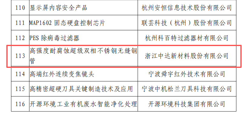 近日,中達新材自主研發的 “” 與 “高強度耐腐蝕超級雙相不銹鋼無縫鋼管” 成功入選2025年浙江省先進技術創新成果名單!