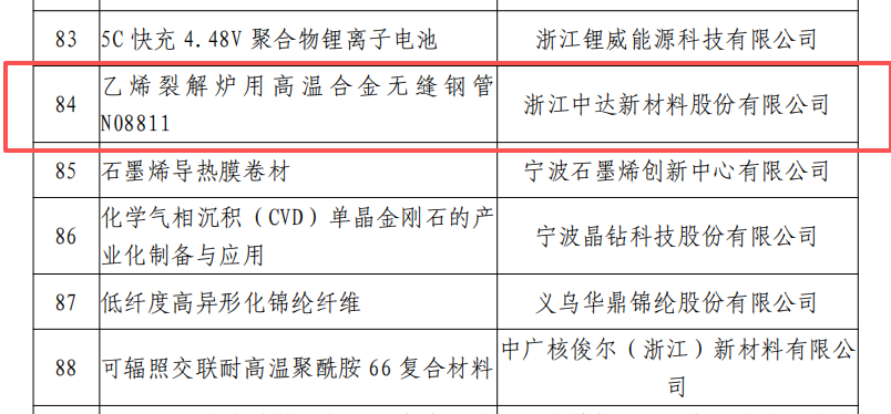 - 下一條中達新材?乙烯裂解爐管入選浙江首批次